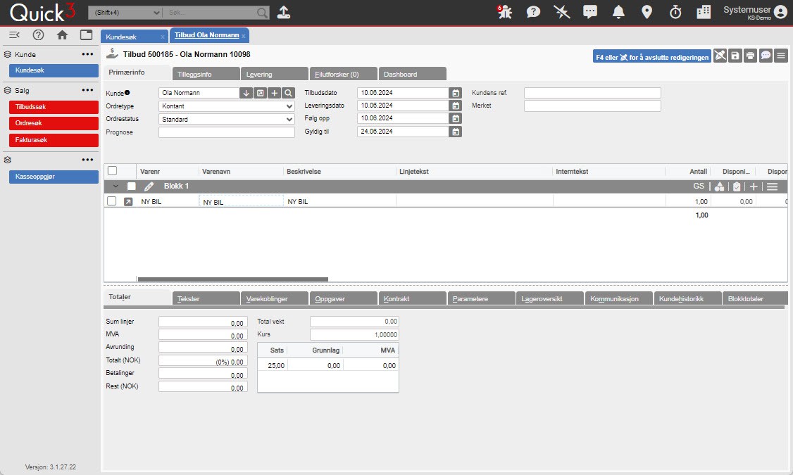 Visste du at du har mulighet for å automatisere bestilling av både kapitalvare og tilbehør fra tilbud i Quick 3?